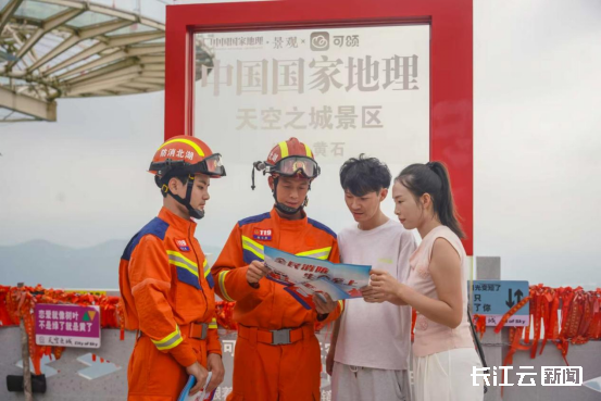 黄石消防在仙岛湖景区向游客科普消防知识。潘晨曦/摄