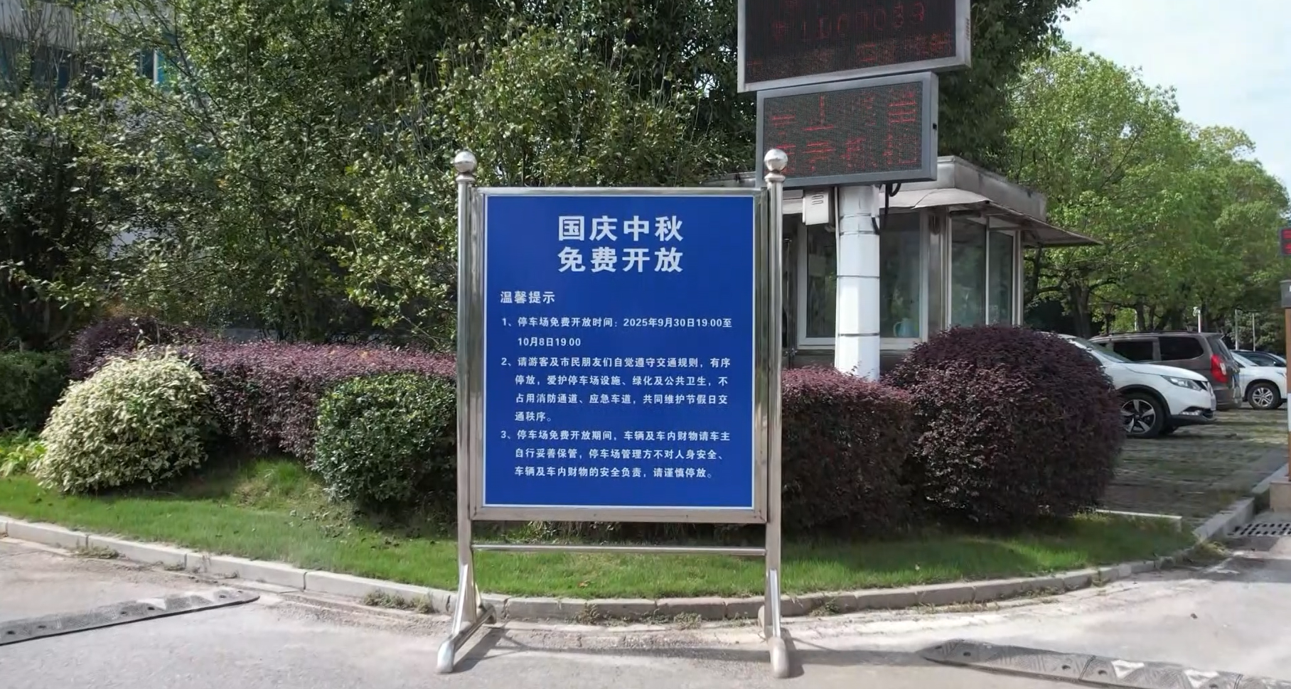 湖北咸宁:“双节”停车免费享 万千游客畅快游