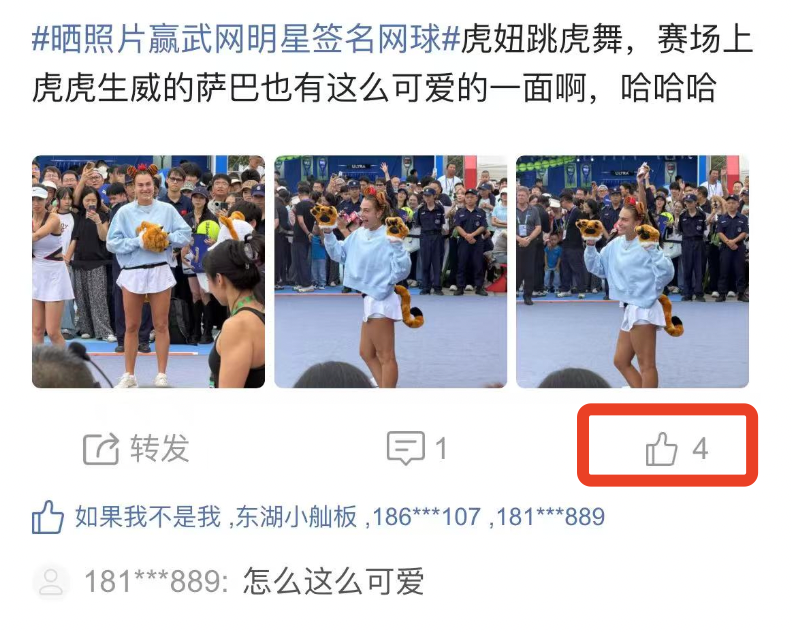 第三步,分享发布后的链接并邀请好友点赞!点赞排名前3的网友,可获得萨巴伦卡亲签手提袋。点赞排名前30的,均有机会获得明星签名网球。