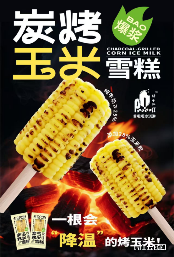 当东方田野,遇上北欧极光,一口咬下创意共鸣,来自武汉的扬子江普啦啦,这次带来远销澳大利亚、新西兰等国家的新品炭烤玉米雪糕、四分之椰雪糕。