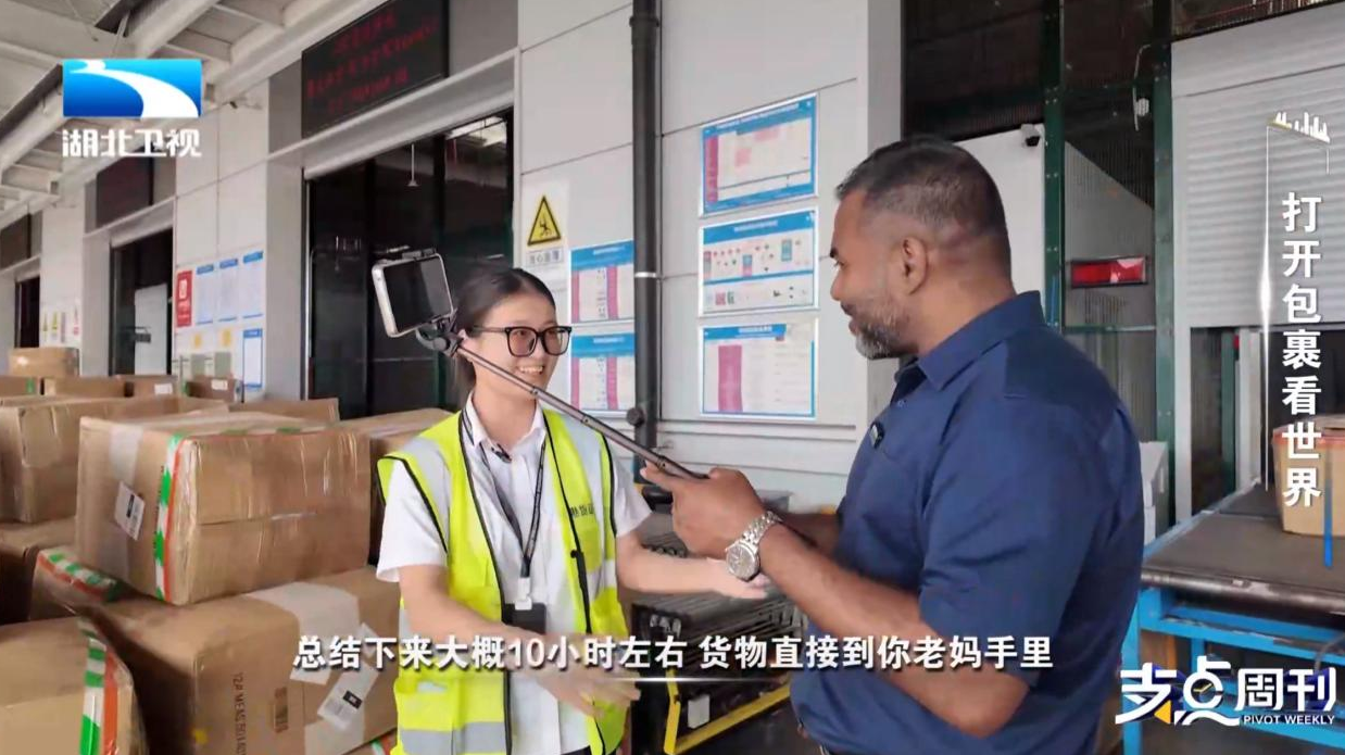 在鄂州空港货运有限公司,加力布认真地数着传送带上的包裹。货站工作人员祝欣告诉加力布这里有一条航线直达他的家乡达卡,且货物只需10小时就能到达时,加力布连连赞叹:“如今通过花湖机场的‘一站式服务’,物流时间从7天缩短至4天,成本还降低了20%!鄂州不仅是‘一带一路’的VIP会客厅,更是全球经济的‘充电宝’!”