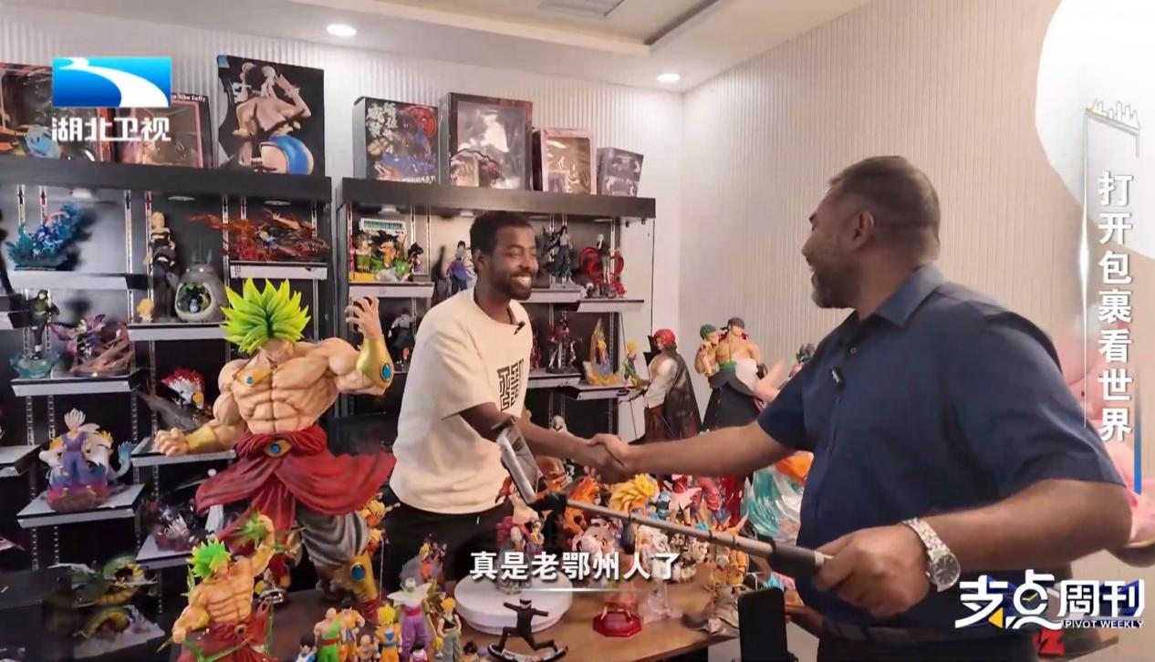 在中国(鄂州)跨境电商产业园的直播间里,来自非洲的主播木海正用流利的中文推介湖北黄冈生产的手办。加力布与木海亲切握手,二人用熟练的中文交谈着:“我来中国八年了,老鄂州人了!”木海笑着介绍,这些精美的产品正通过花湖机场的物流网络,源源不断地发往美国。