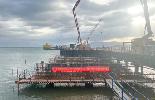 近日,中交一航局三公司承建的阳江港海陵湾港区吉树作业区#15通用泊位码头工程项目顺利完成首段现浇横梁混凝土浇注,标志着该项目码头工程正式进入上部结构施工阶段。