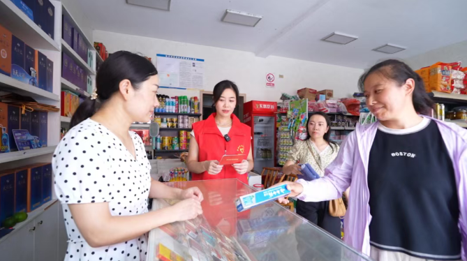 2025年6月25日,监利市荒湖管理区文明实践志愿者引导群众在“美丽荒湖爱心积分兑换超市”兑换奖品。李超 摄