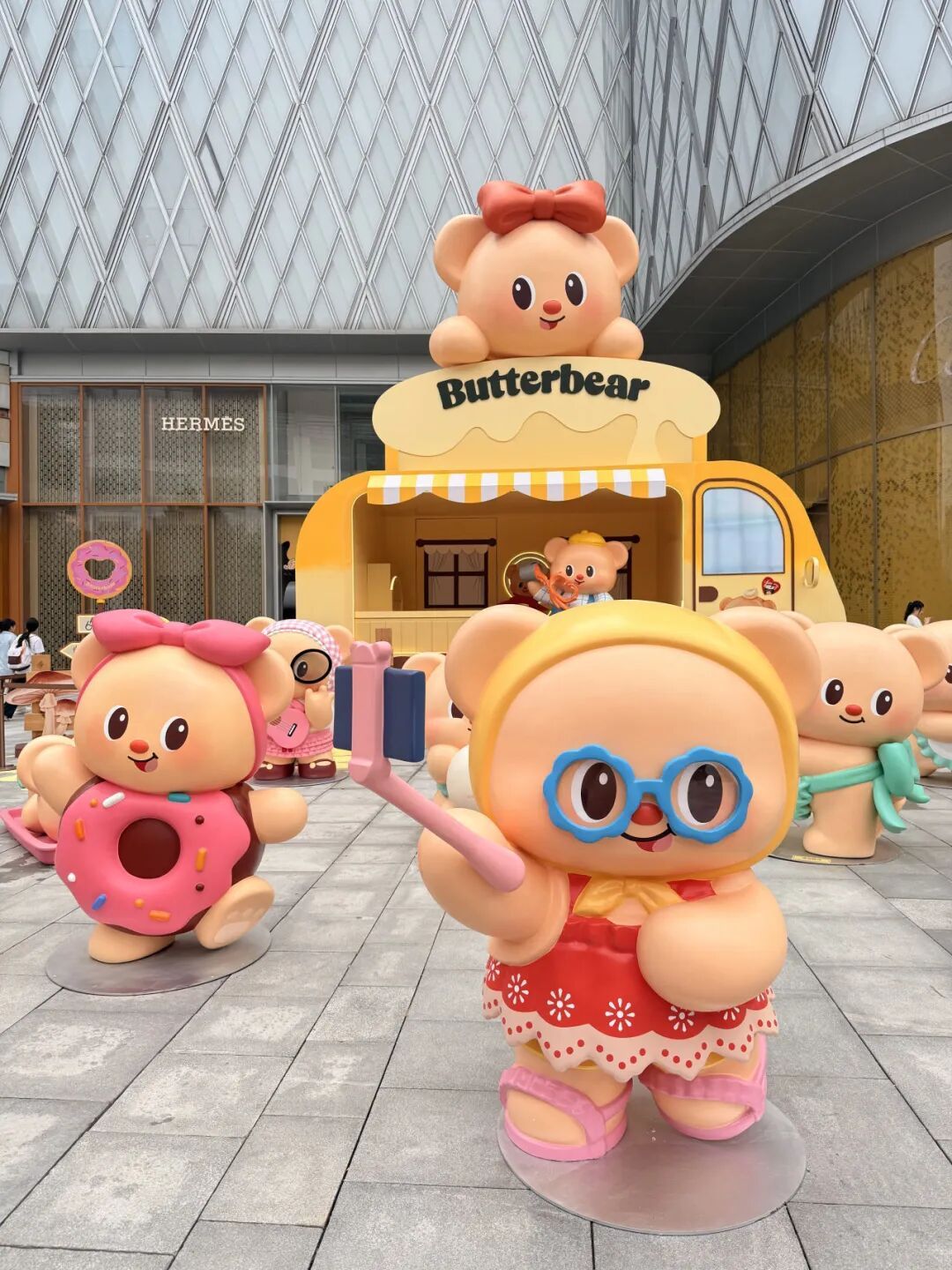 烘焙车、甜品屋、森系小屋等黄油小熊打卡点,分布在恒隆广场内外各个角落,转角就可能遇见小可爱。