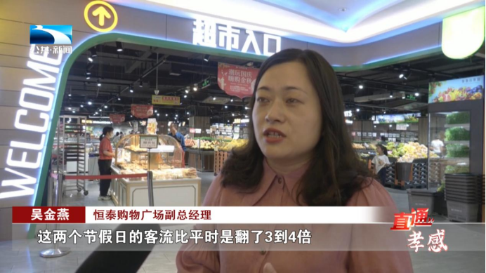 恒泰购物广场副总经理 吴金燕:这两个节假日的客流比平时是翻了3到4倍,整体营业额是上涨16%,同比去年国庆上升率在9.3%。