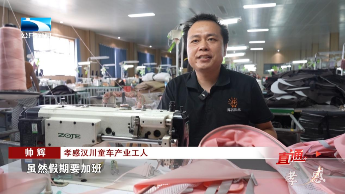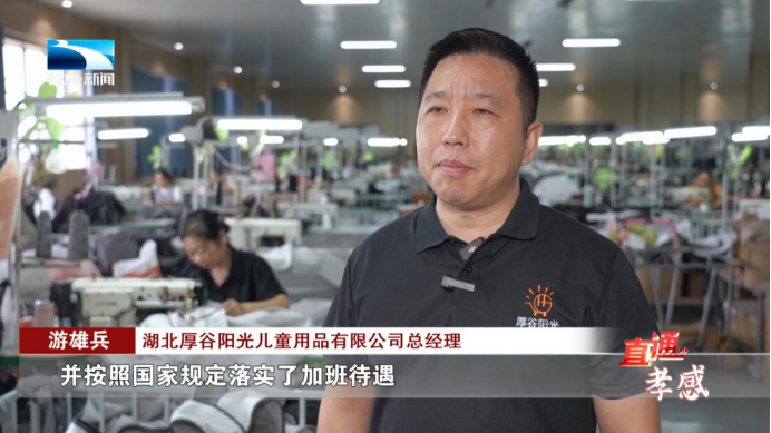 湖北厚谷阳光儿童用品有限公司总经理 游雄兵:为了保障假期生产,我们合理调配了200名员工 轮班作业,并按照国家规定落实了加班待遇,目前订单同比增长了20%。