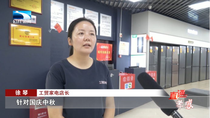 工贸家电店长 徐琴:针对国庆中秋,在国补的基础上联合厂家另外做了一场活动,就是在国补的活动上面,有的又省了20%,(补贴)力度是非常的优惠。