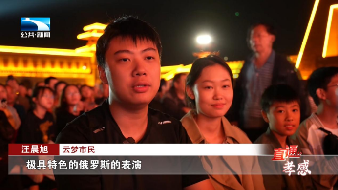 云梦市民 汪晨旭:有打铁壶(花),还有现在正在准备的极具特色的俄罗斯的表演,我们现在足不出户就可以感受,非常喜庆欢乐的节日氛围。