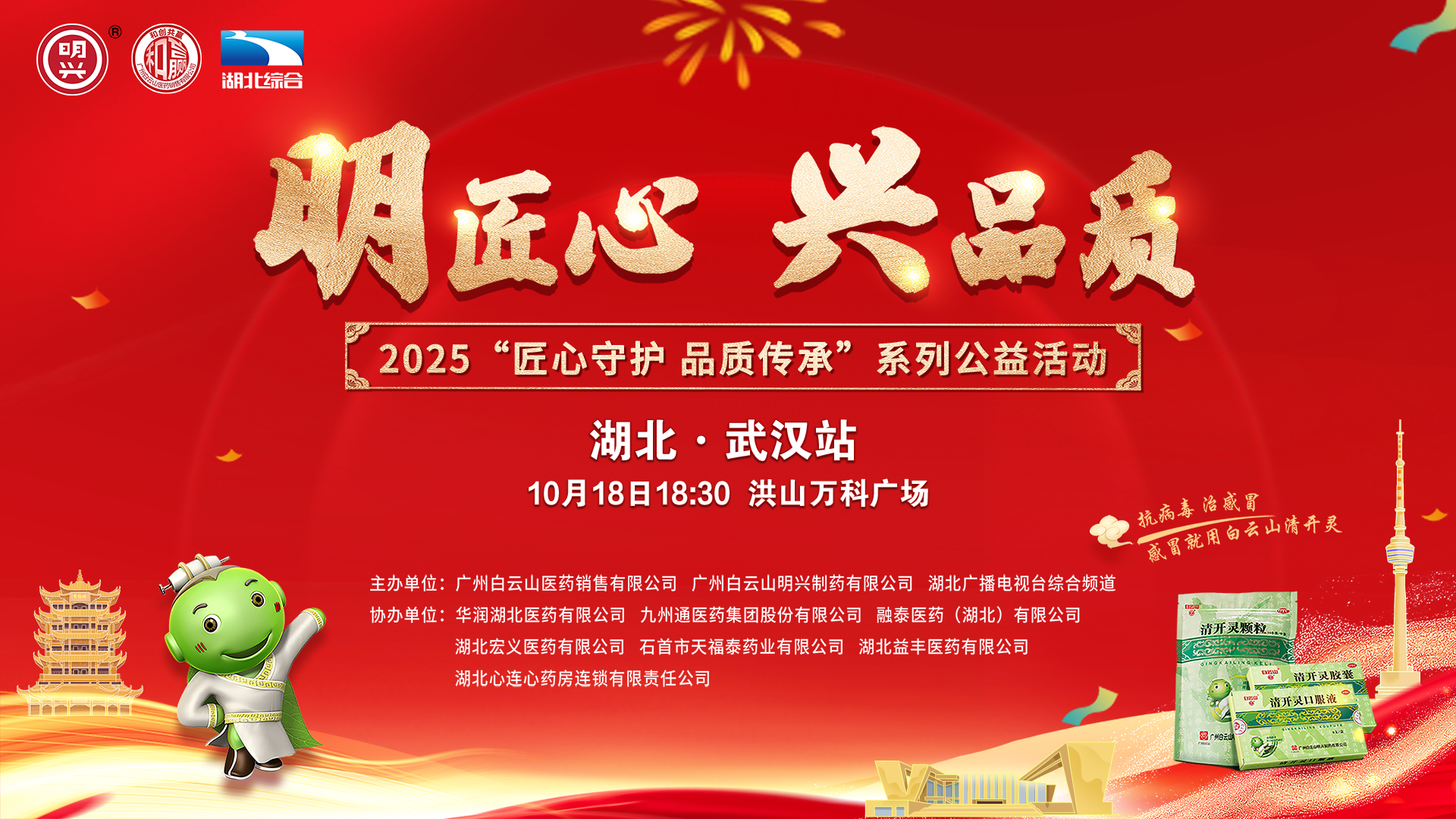 百年薪火相传,白云山明兴清开灵,以“药者仁心”为初心,在古法与智造的交融中,把“匠心守护 品质传承”化作日日夜夜的真切坚守。《明匠心 兴品质--2025“匠心守护 品质传承”系列公益活动》湖北武汉站,将于10月18日18:30,武汉万科广场,盛大启幕!