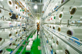 2025年9月27日,河北省遵化市一家化纤有限公司的工人在车间工作。新华社发(刘满仓摄)