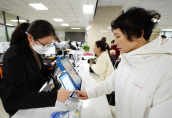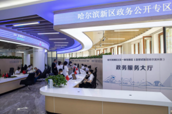 2022年7月12日,市民在黑龙江省哈尔滨新区江北一体发展区(自贸试验区哈尔滨片区)政务服务大厅办理业务。新华社记者 张涛 摄