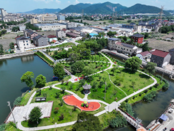 这是2025年6月18日拍摄的经过环境整治提升的浙江省长兴县李家巷镇许家浜村田心岛公园(无人机照片)。新华社记者 徐昱 摄