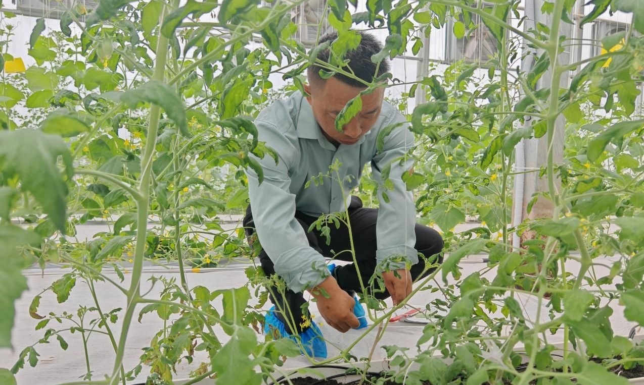 “形状不好的果子都要掐掉,保证好果子的营养!”10月13日一大早,在湖北咸宁嘉鱼县潘家湾镇金润农业蔬菜科技馆内,省农科院病虫害防治专家焦忠久正忙着指挥工作人员给黄瓜落蔓、疏果,他自己则拿着笔记本,猫着腰在一排排番茄苗间仔细查看。