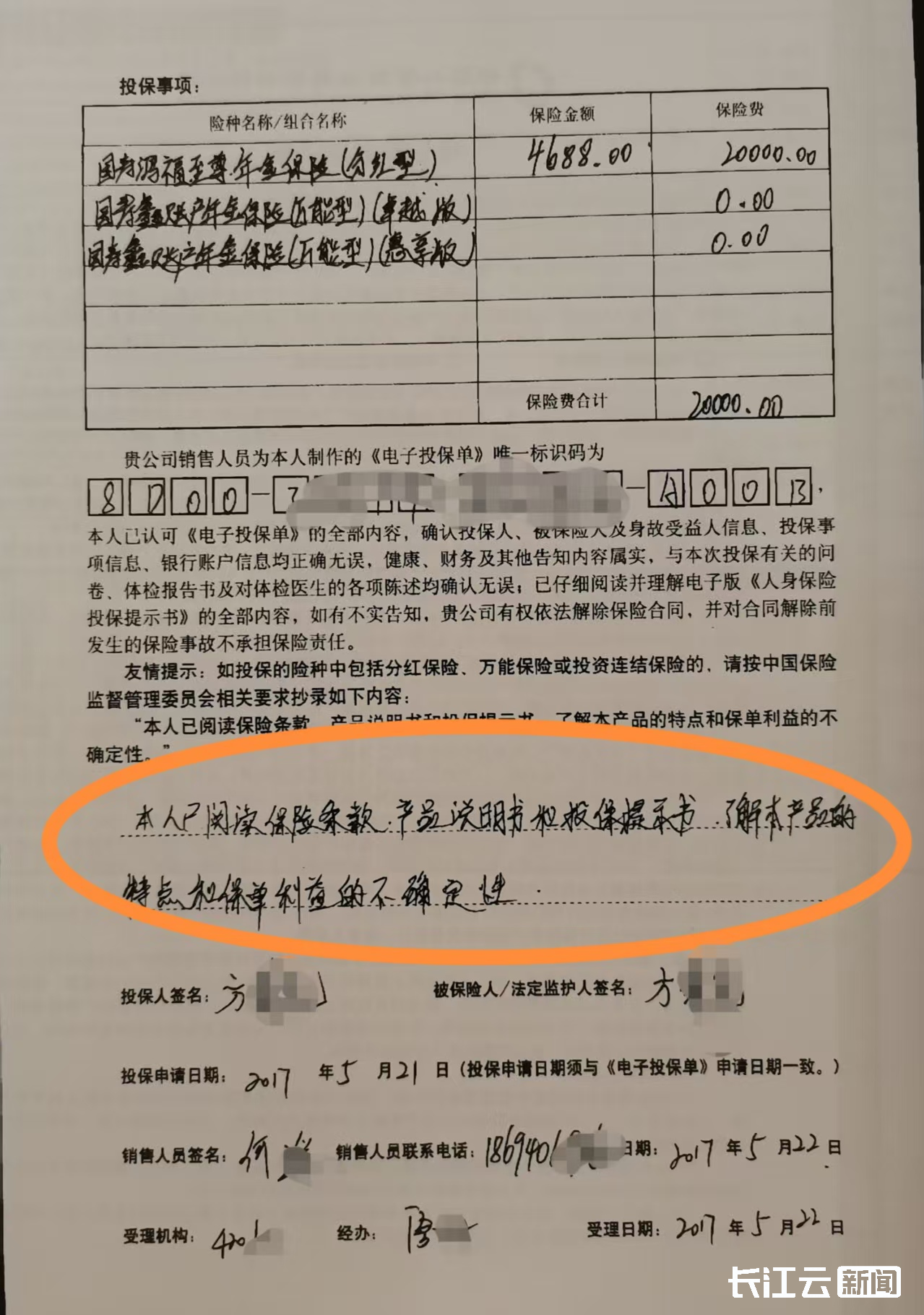 武汉田先生向长江云新闻求助反映,8年前,他和妻子受邀参加中国人寿保险的一场线下产品推介会,在会上,主办方宣传的一款收益率5.5%的产品,成功吸引了他们,而且业务员说这个产品20年到期后,可以拿回20万。因为田先生是盲人,也看不了保单具体内容,就根据营销说辞,让妻子草率签了保单。