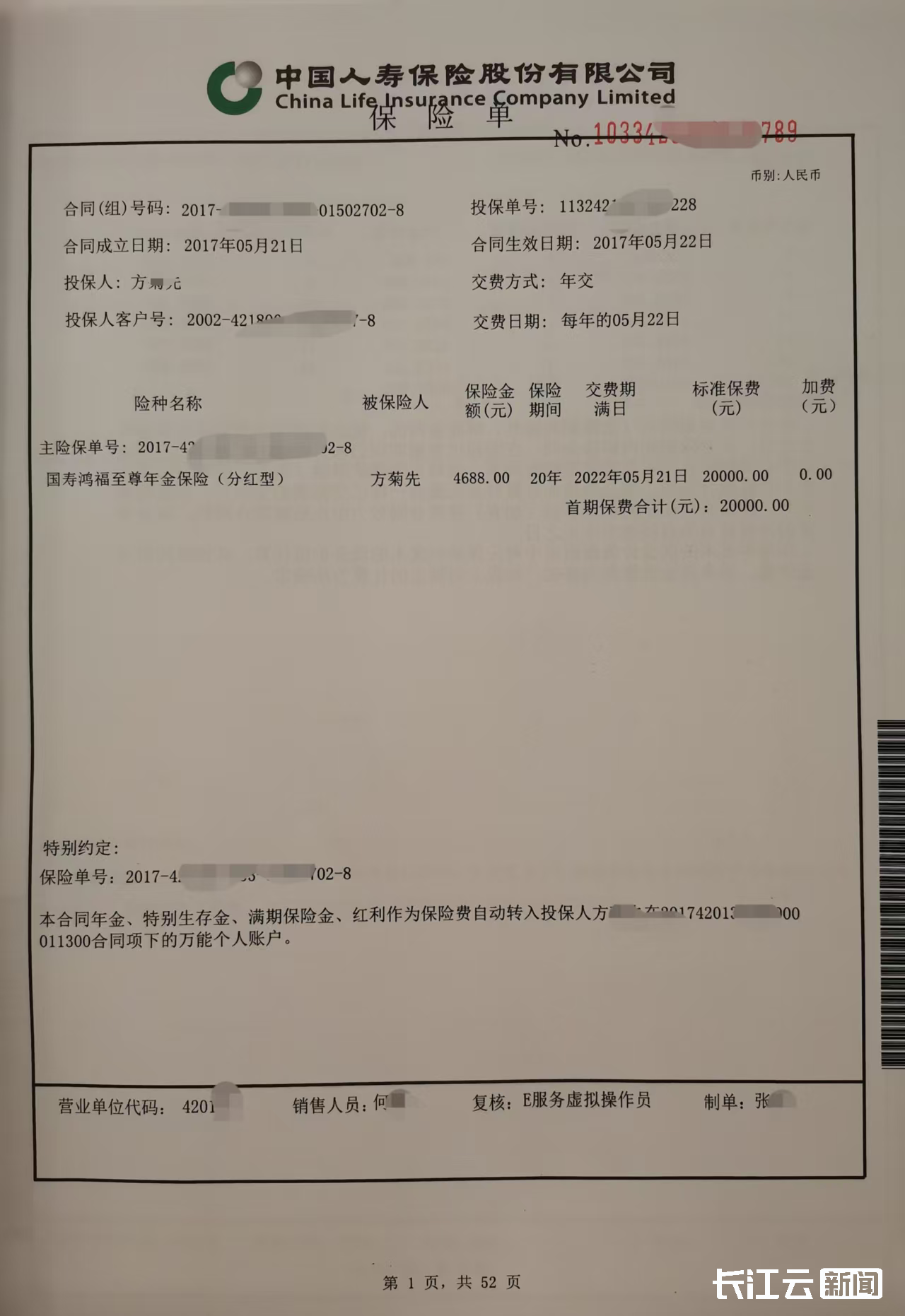 9月26日,长江云新闻记者陪同田先生夫妇二人一同前往了中国人寿保险武昌中支公司。