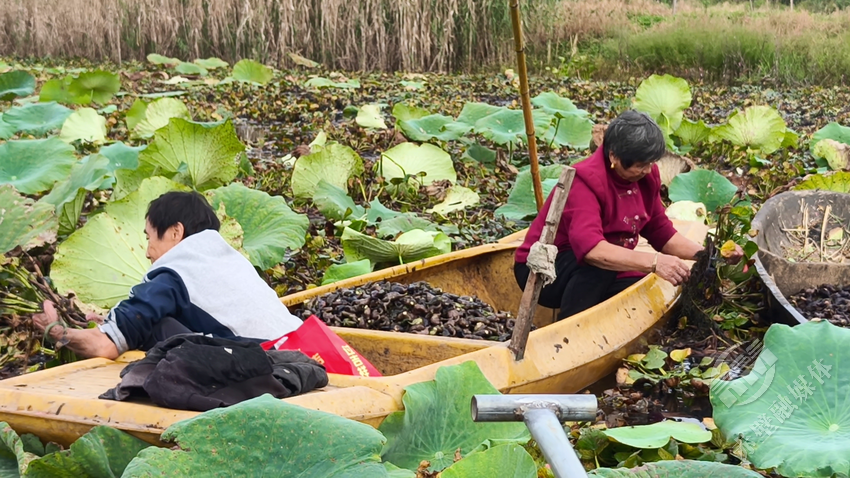 在西湖村,采菱人大多是六七旬的长者。他们的手指因长时间浸泡在水中而发白起皱,指甲上还浸染着变黑后刷洗不净的菱浆。这些痕迹,承载着采菱人对每颗菱角的深情,也记录着他们靠水吃水的坚韧。村里为数不多的年轻人何娇敏,将村民们的辛勤劳动看在眼里,急在心上。