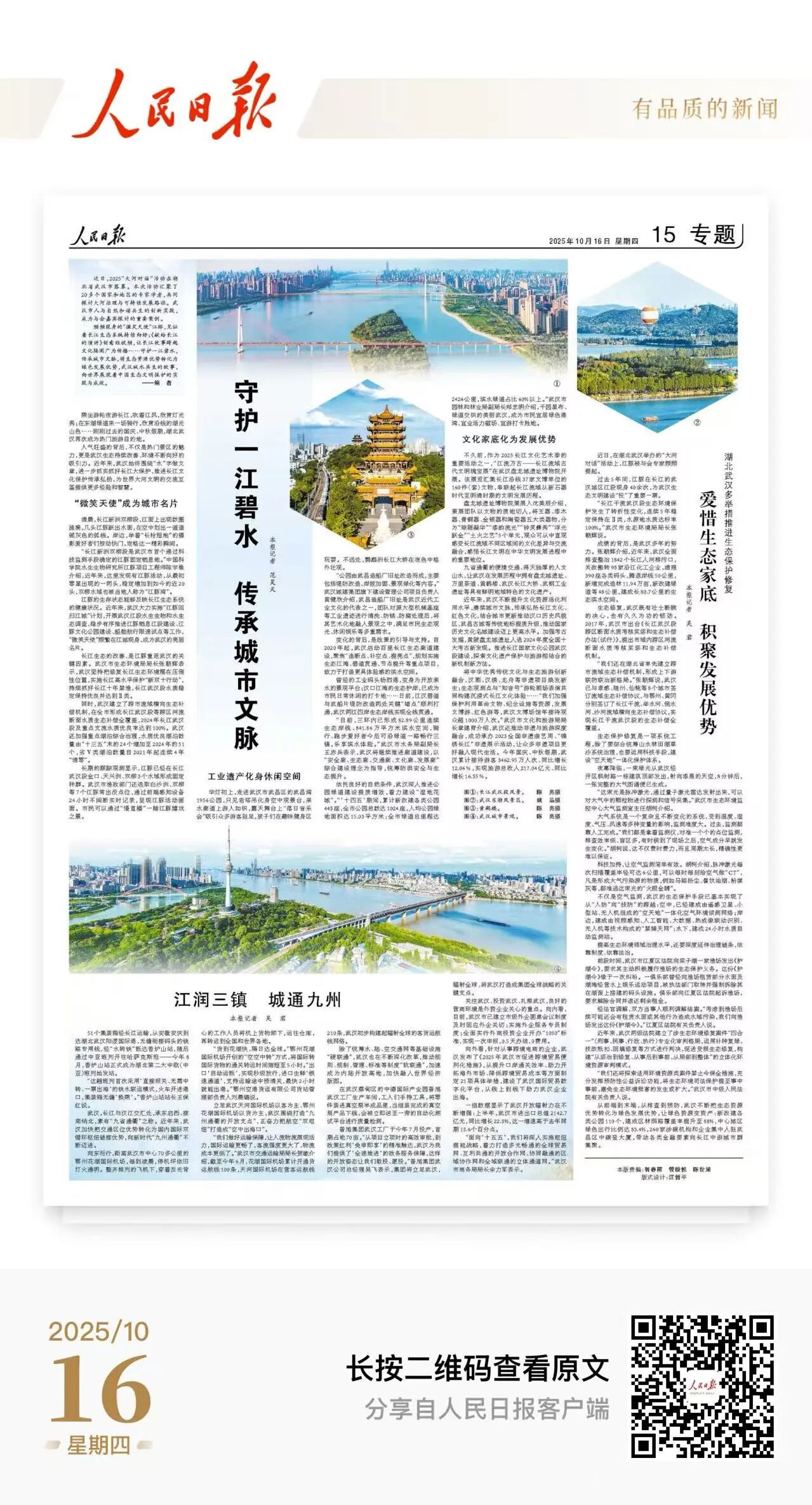 今天(10月16日),《人民日报》刊发《守护一江碧水 传承城市文脉》《湖北武汉多举措推进生态保护修复 爱惜生态家底 积聚发展优势》《江润三镇 城通九州》,点赞武汉围绕“水”字做文章,抓实抓好长江大保护。