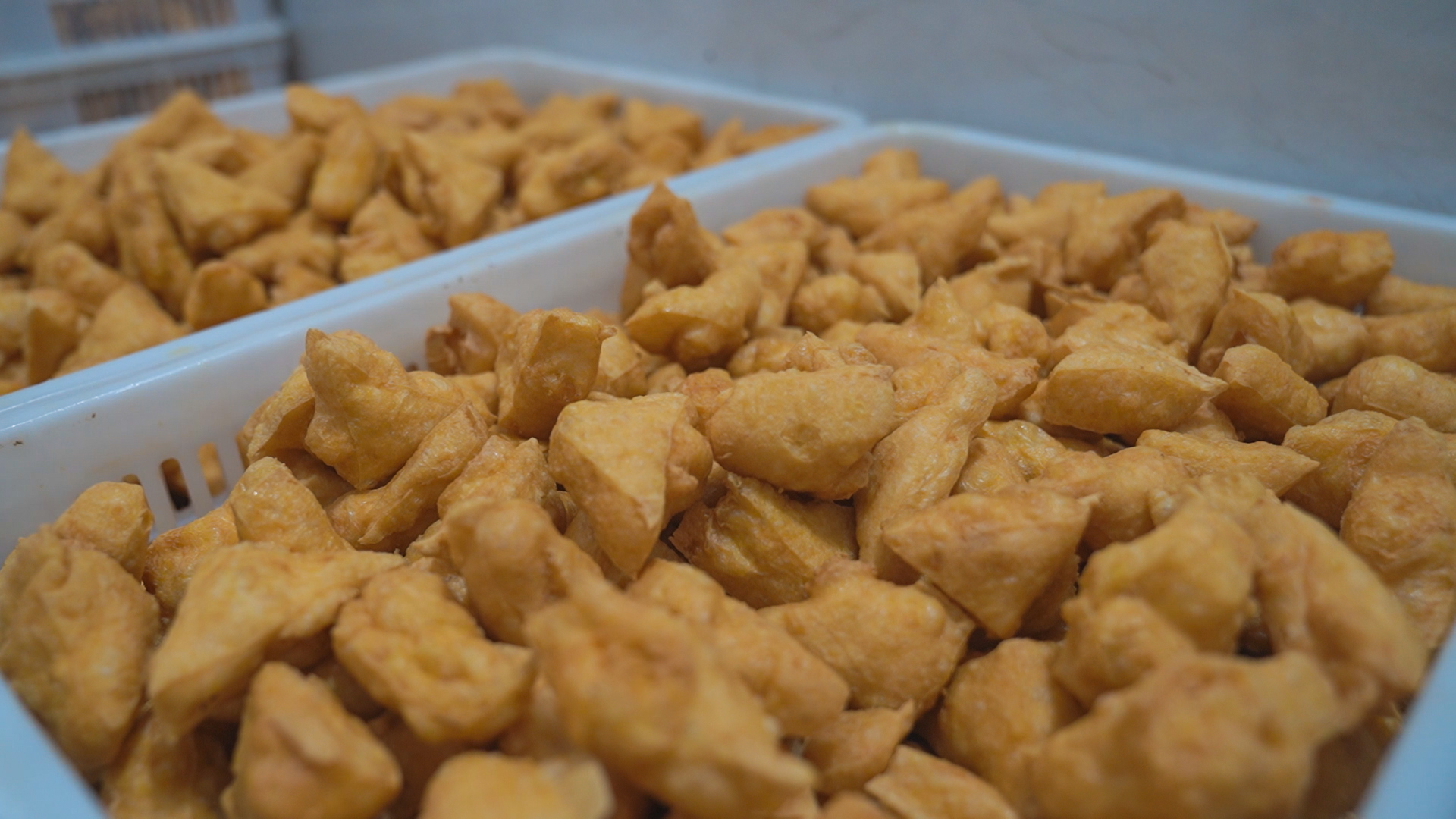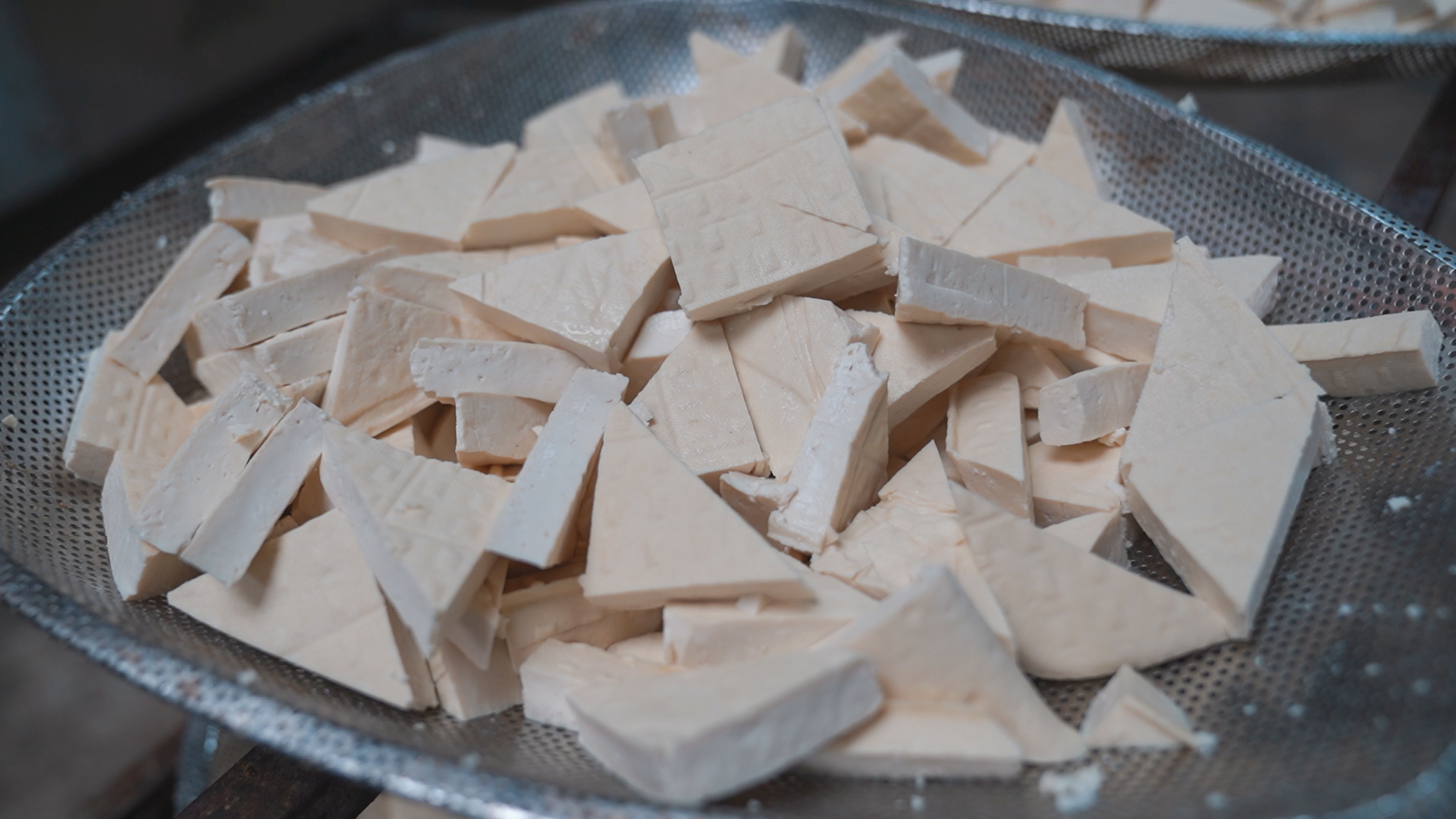 为了找到最适配的黄豆,张方良先后奔赴汉川、洪湖、天门等地考察,对比不同产区黄豆的蛋白质含量、颗粒饱满度和口感。最终,他选定了天门的高蛋白黄豆作为主要原料。“蛋白质含量高,做出来的豆腐更扎实、更有弹性,无论是煎、炸、炖还是凉拌,都好吃。”