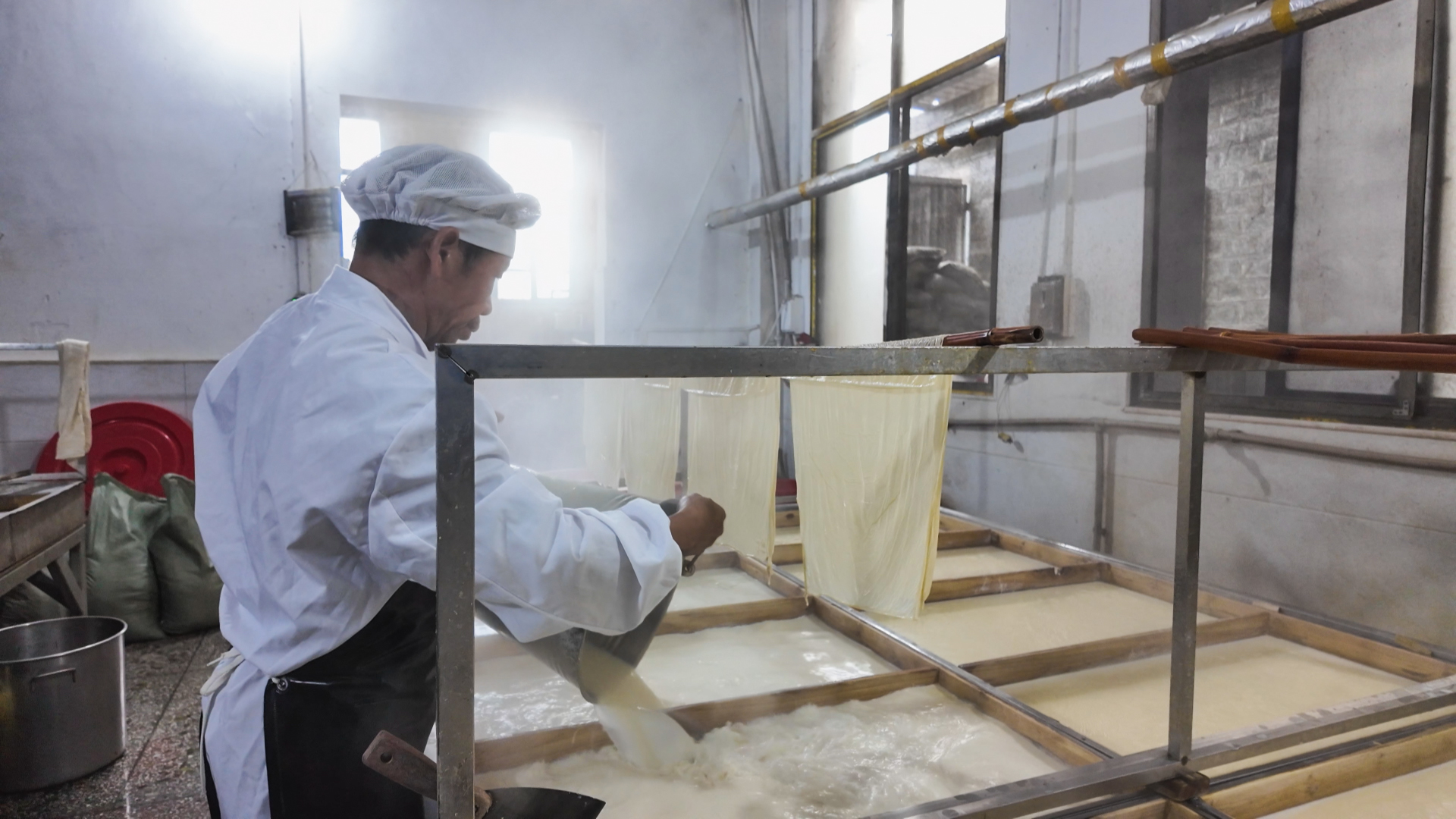 “家乡的水好,做出来的豆腐肯定差不了。”带着对家乡资源的信心和对乡村振兴的责任感,张方良毅然决定放弃广东的稳定事业,回到中山村承包下这家豆腐作坊。他深知,要让传统豆腐产业“活”起来,必须先解决设备落后的问题。为此,他第一时间投入资金更换生产设备,从清洗、磨浆到成型、压榨,全方位升级生产流程,既提高了生产效率,也为产品品质稳定打下了坚实基础。