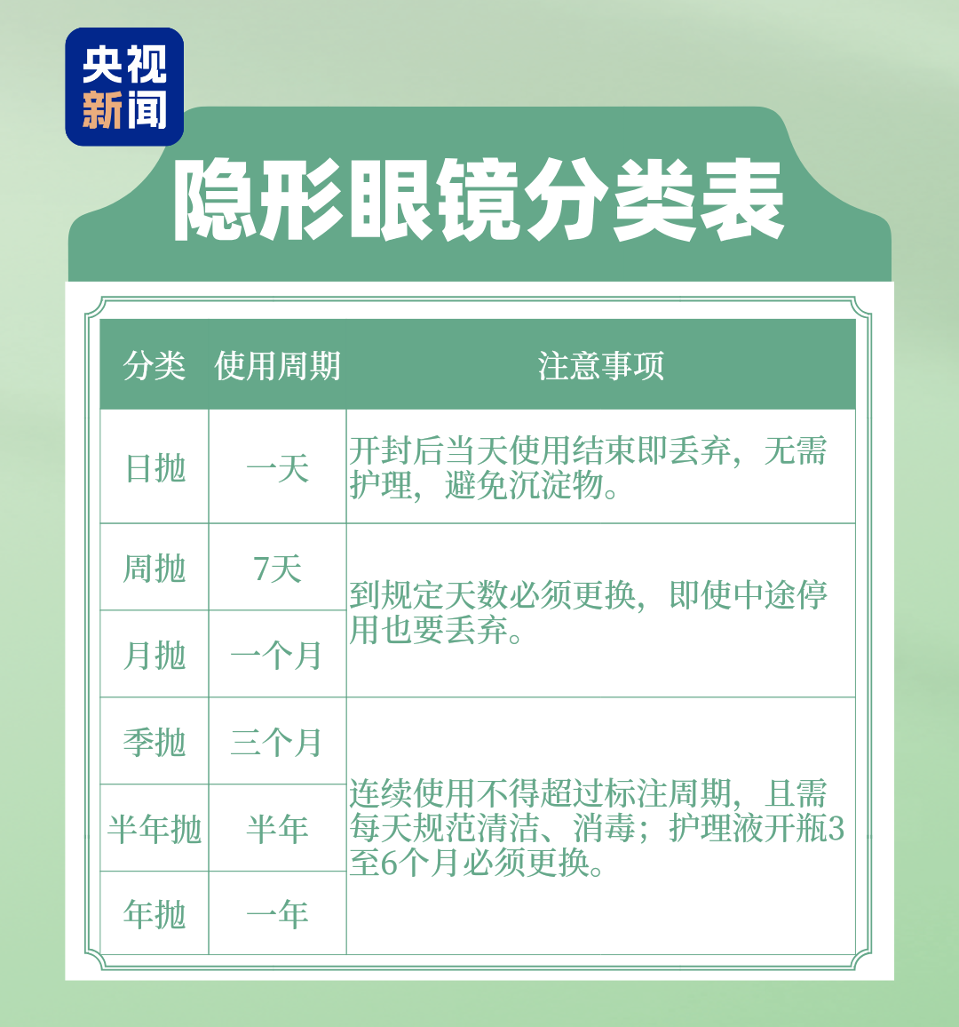 按使用周期分类,隐形眼镜可分为日抛、周抛、月抛及年抛等。