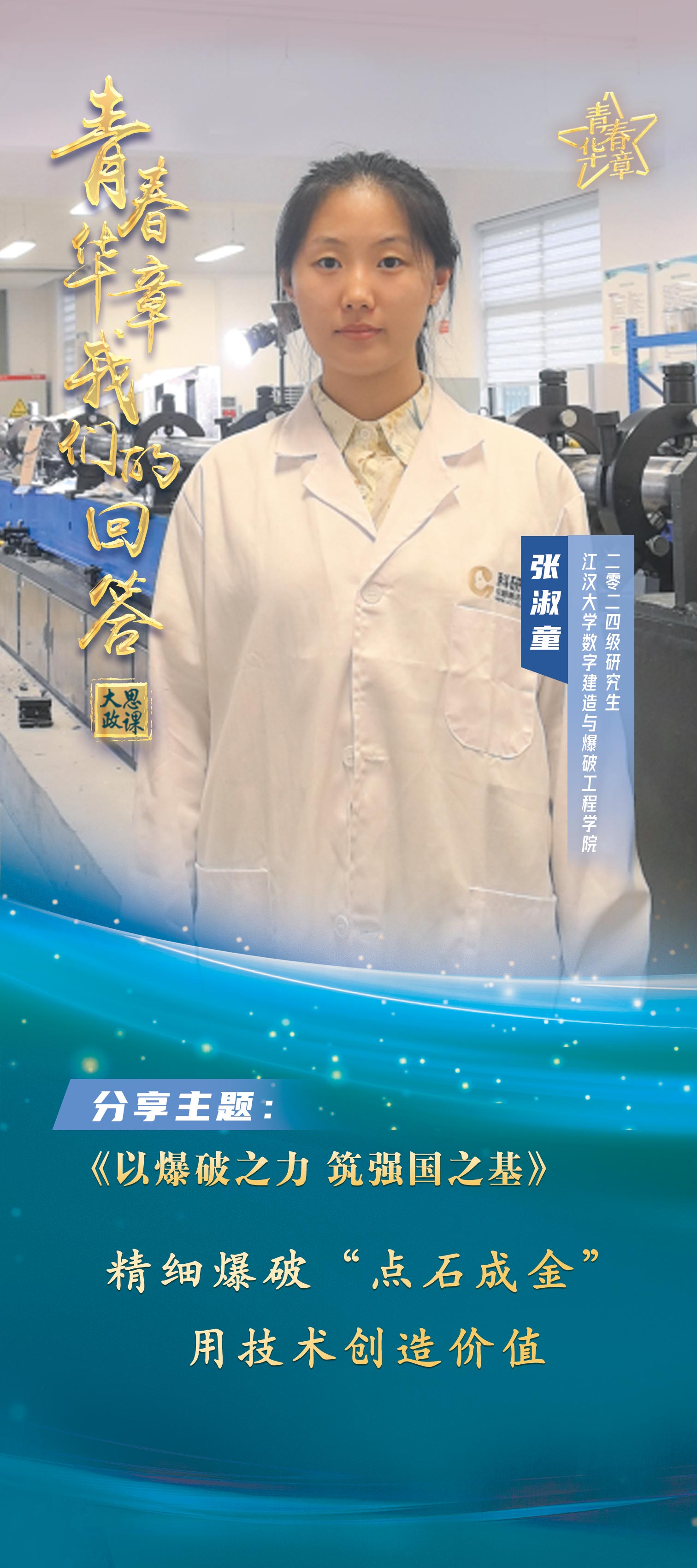 “说起爆破,大家的印象是怎样的?砰的一声、再高的大楼、再高的山体,瞬间崩塌,是不是觉得充满了危险?” 10月16日,“青春华章 我们的回答”网络主题大思政课活动现场,江汉大学研二学生、精细爆破全国重点实验室成员张淑童的提问,引起了大家的兴趣。