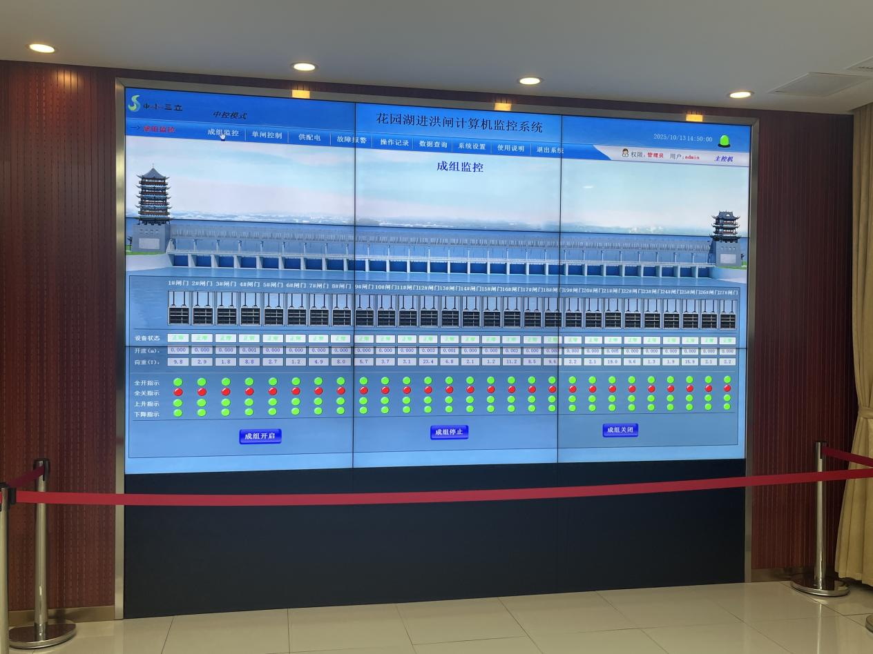 走进工程控制中心,计算机监控系统屏幕上实时显示着闸门开度、水位流量、设备工况等多项数据。系统将27孔闸门、大吨位启闭机等设备纳入一体化智能管控,实现了远程精准操作与运行状态的实时感知。