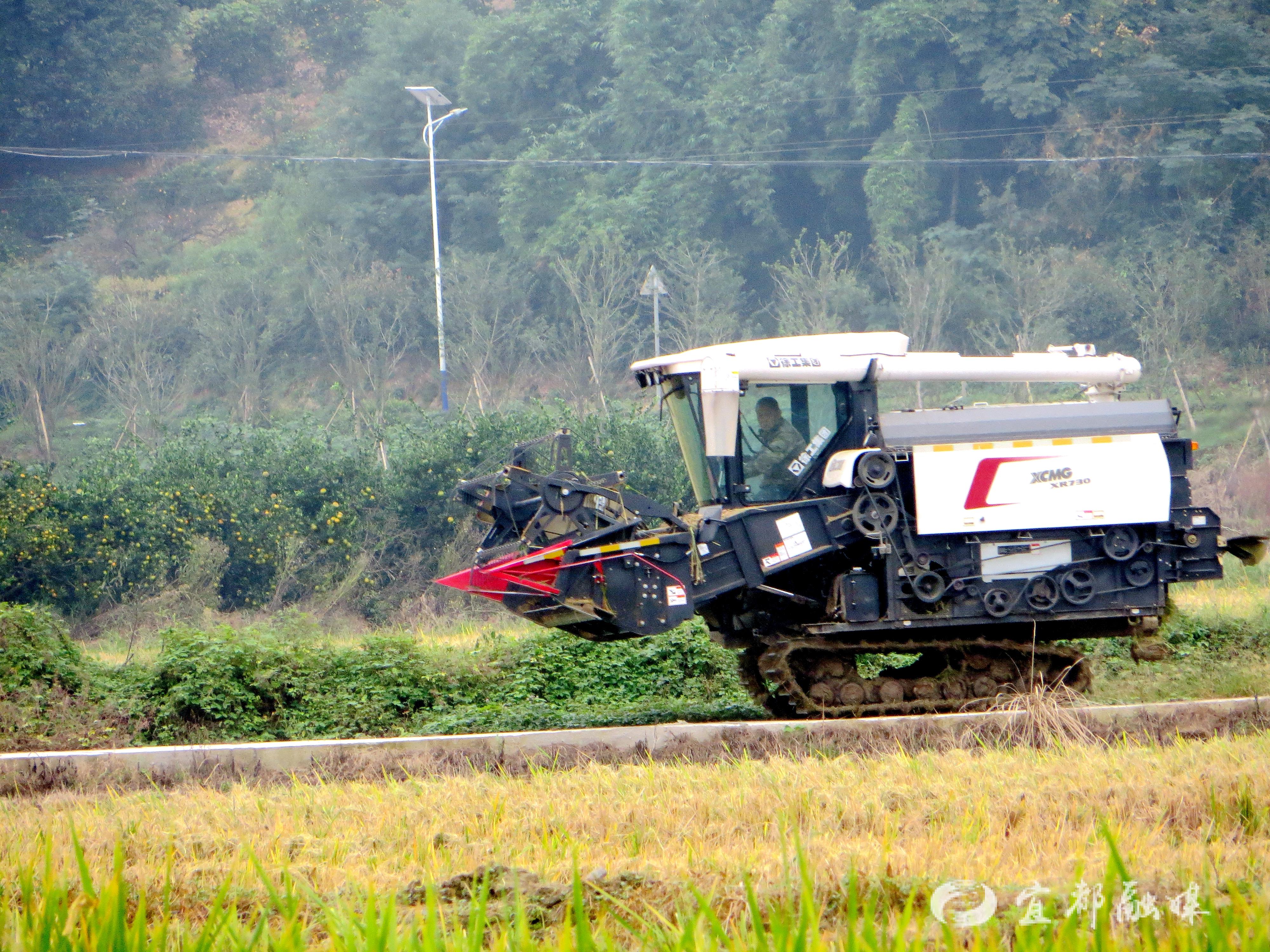 10月15日,在湖北宜都姚家店镇黄莲头村六组官家湾的田野上,一派繁忙的丰收景象映入眼帘。融兴合作社承包的50亩水田里,金灿灿的稻穗随风摇曳,大型收割机与运输车来回穿梭,共同奏响了农业现代化发展的“丰收乐章”。