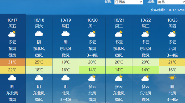 而位于江南中部的南昌,明后天最高气温连降12℃,后天最高气温也会在立秋后首次降至20℃以下。
