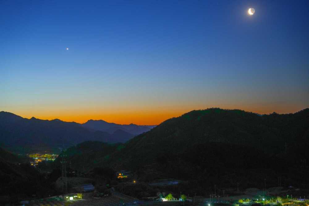 中国天文学会会员、天津市天文学会理事杨婧介绍,在众多的行星伴月中,金星伴月是最容易观测的,因为通常情况下,金星和月球是夜空中最亮的两个天体,且二者相伴时,月相一定是蛾眉月或残月。弯弯的月牙和明亮的金星极为匹配,无论是拍摄还是目视,都非常适宜。