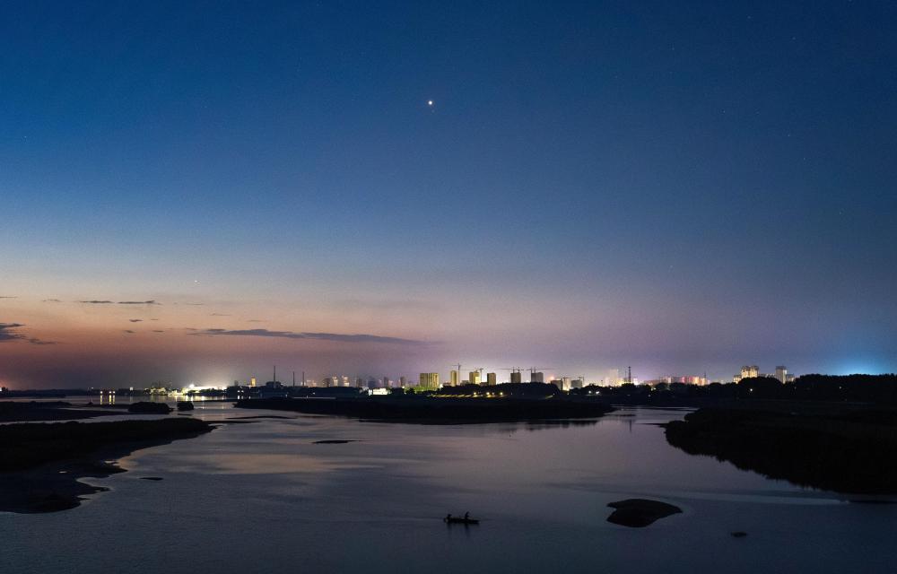 2025年7月22日,在黑龙江佳木斯拍摄的启明星伴月。(陈志国 摄)