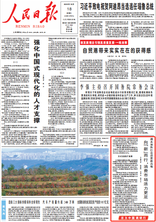 《人民日报》头版聚焦湖北加快打造消费新高地:向“新”而行 消费市场活力更足