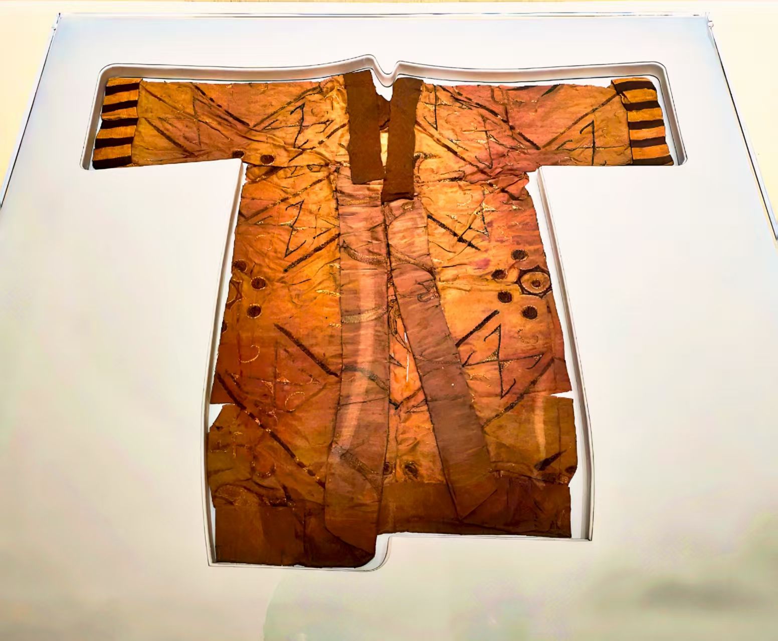 目前我国发现最早的对襟款式服装,湖北荆州马山一号楚墓出土。王郭骥摄。