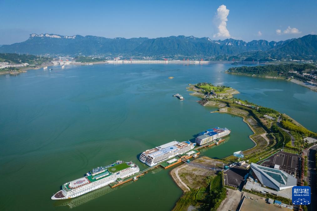 ▲5月23日,客轮停靠在湖北秭归港码头使用岸电。新华社发