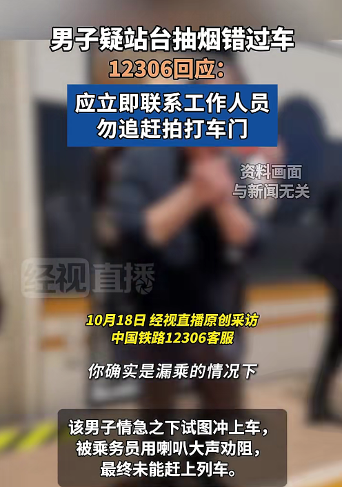 12306回应男子疑站台抽烟错过车:应立即联系工作人员,勿追赶拍打车门