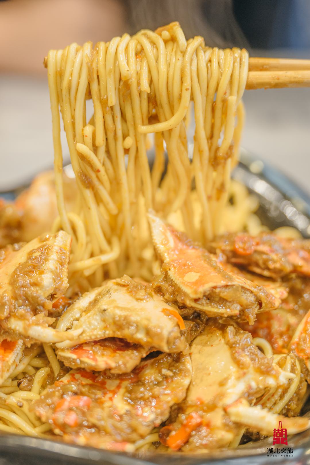 若想换种风味,不妨试试香辣爆炒,猛火锁住了蟹肉的鲜嫩,红亮的酱汁紧紧包裹住每一块蟹肉,令人回味无穷。或是来一份筋道的蟹脚面,碱水面裹满浓郁酱汁,配上蟹肉品尝,鲜辣又过瘾!