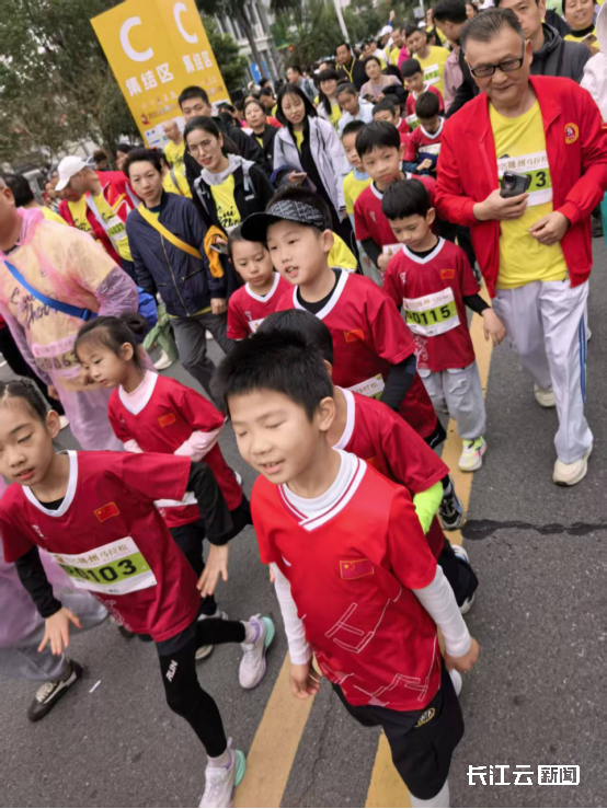 赛道上,除了奋力奔跑的成年跑者,30名由家长带领的“羽二代”小朋友组成的欢乐跑队伍,成为了一道格外亮眼的风景线。今年8岁的叶籽航牵着爸爸的手,迈着小碎步奋力向前,脸上洋溢着灿烂的笑容;祝裕贺和蒋林恣则相互鼓劲,时不时举起小旗帜为身边的跑者加油。“平时就跟着爸爸妈妈去羽毛球馆,这次能来跑马拉松,感觉特别开心!”蒋林恣的话语中满是童真与活力。家长们表示,带孩子参与赛事,既是希望培养他们的运动习惯,也是想让孩子们亲身感受家乡体育氛围的浓厚,将对体育的热爱代代传承。