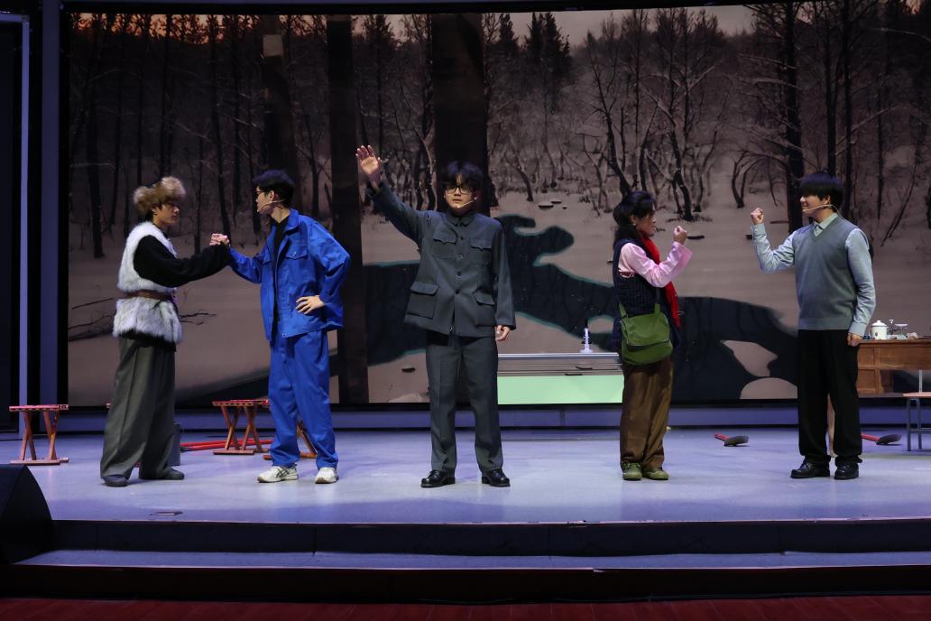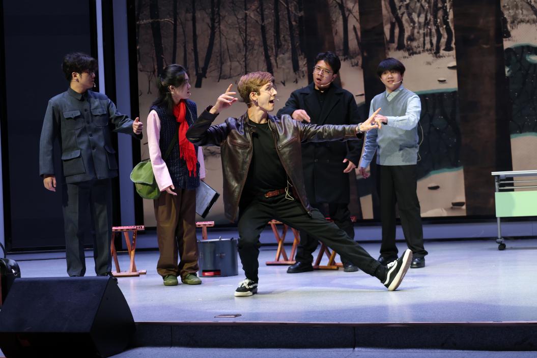 交流环节后,《地脉寻踪》剧组应现场师生期待,登台演绎话剧第一幕。演出中,演员们凭借对角色的理解,将李四光及其团队在开发大庆油田过程中的坚定信念与艰辛历程生动呈现——从地质勘探时的严谨专注,到面对困难时的相互鼓励,每一个表情、每一句台词都饱含情感;同时,贴合时代背景的精美道具、还原场景的舞台布置,更让观众仿佛“穿越”到当年的勘探现场,真切感受到科学家们为国奉献的精神力量。