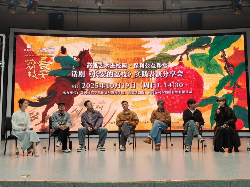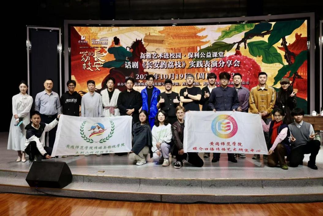 10月19日,一场以“高雅艺术进校园助力科学家精神传扬”为主题的话剧交流活动在黄冈师范学院传媒与影视学院开展。此次活动由该院、西安话剧院以及黄冈保利大剧院联合承办,特邀入选第四届长三角城市戏剧节的《长安的荔枝》剧组到场,为学院原创话剧《地脉寻踪》提供公益指导,同时搭建师生与专业剧组交流的平台。百余名师生参与活动,共同为《地脉寻踪》的排演完善与后续公演蓄力。