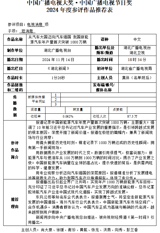电视消息:从汽车大国迈向汽车强国 我国新能源汽车年产量首次突破1000万辆(推荐表).docx