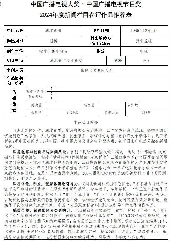 电视新闻栏目《湖北新闻》