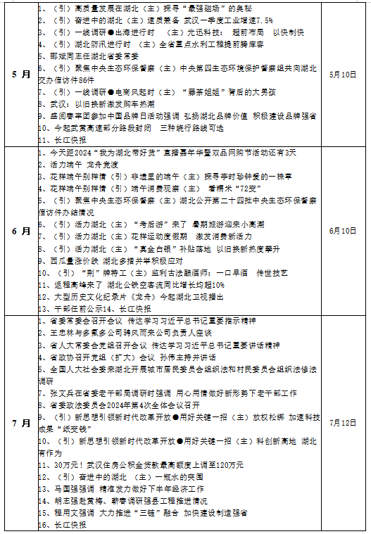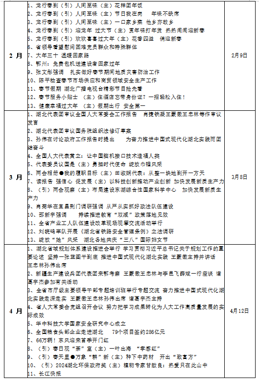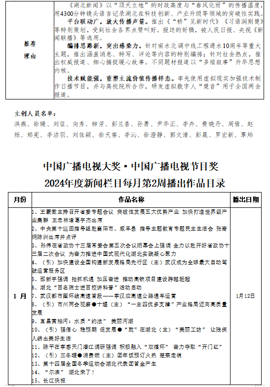 电视新闻栏目:湖北新闻(每月第2周播出作品目录).docx