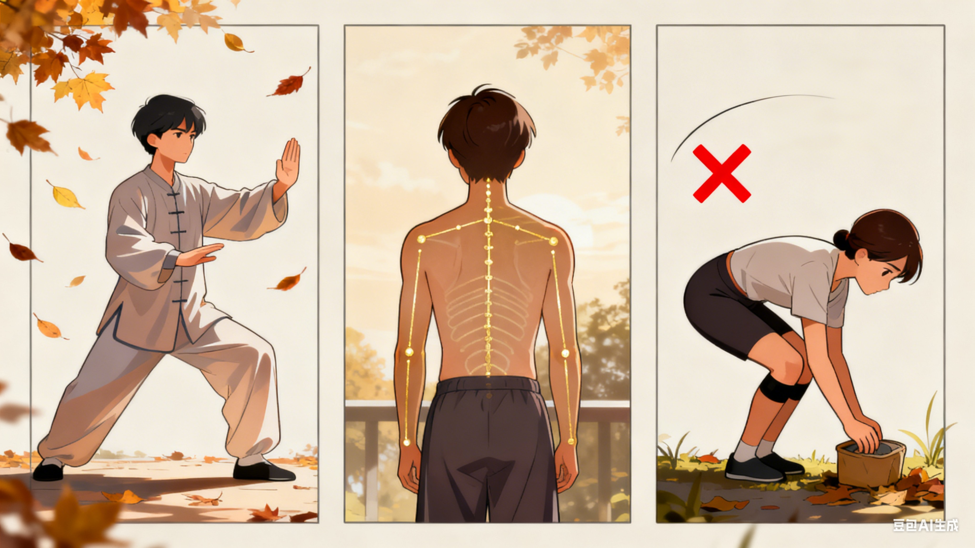 拒绝剧烈运动:秋季宜 “收” 不宜 “耗”,推荐打太极拳、练八段锦 “两手攀足” 动作,每天 15 分钟,既能活动脊柱、强筋健骨,又符合 “动则生阳” 的养肾原理,还不会因出汗过多耗伤津液;
