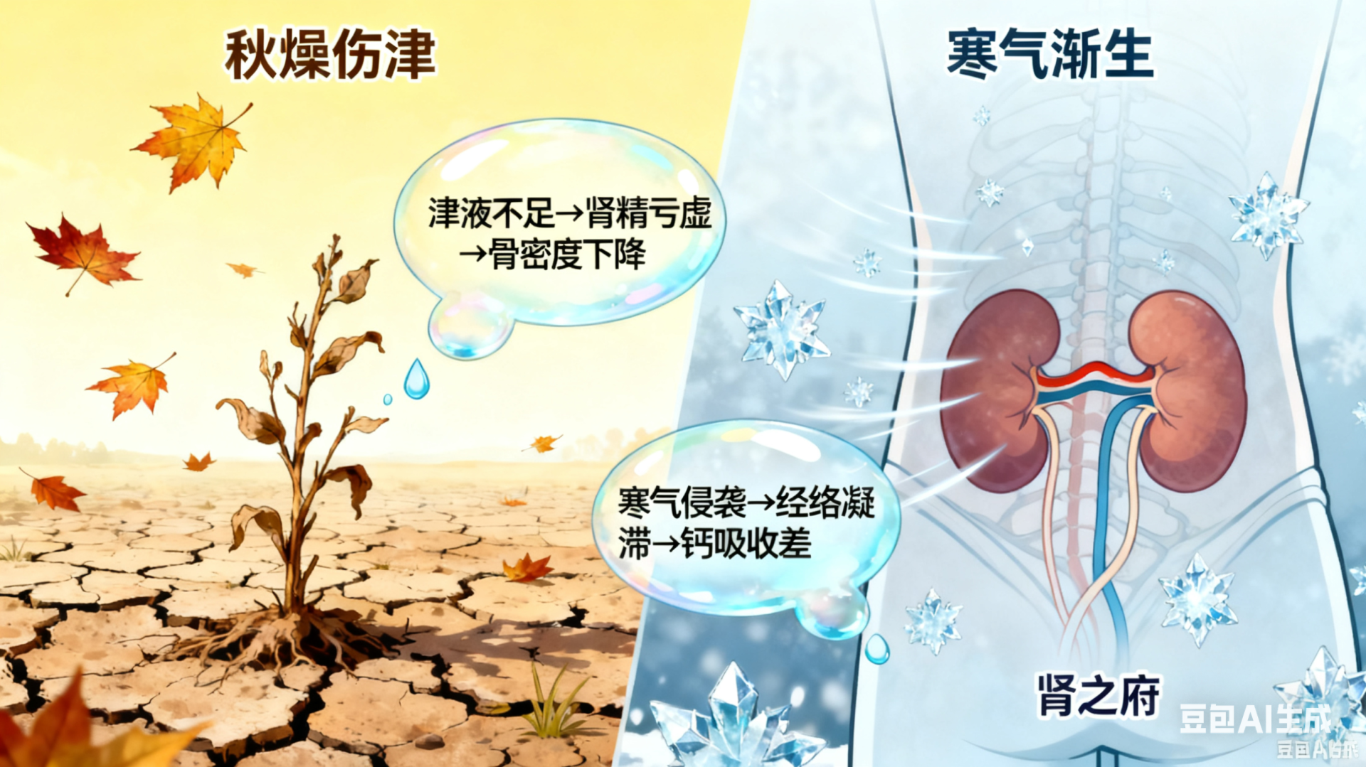 中医讲 “秋冬养阴,肾主封藏”,秋季气温渐降、空气干燥,对骨骼健康藏着两大 “隐形威胁”: