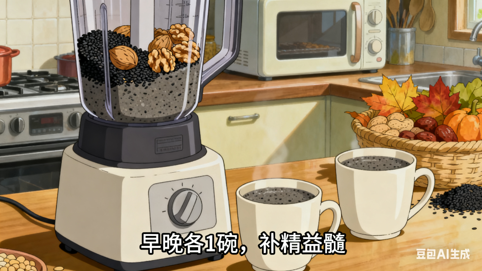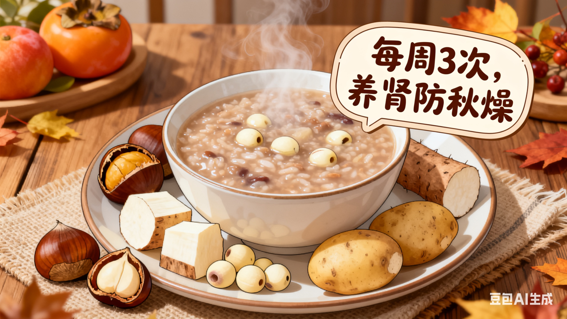 日常食疗:推荐 “板栗山药莲子粥”,板栗补肾强筋、山药健脾益胃、莲子养心固肾,秋季每周喝3次,既能养肾又能防秋燥;还可以用黑芝麻、核桃打糊,早晚各1碗,补精益髓。
