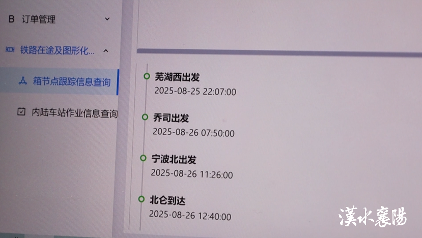 宁波港襄阳销售经理彭迎龙介绍:“这项技术能实现可视化的数字化监测,发货人可以实时掌控货物动态。只需要输入提单号、输入箱号,就能实时掌控货物位置并反馈给买家,买家的体验感会非常强。”