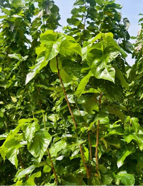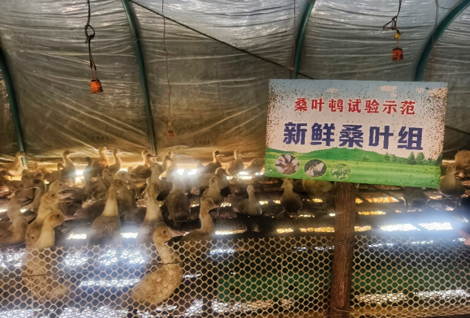 强桑一号,桑叶中的“巨无霸”今年,合作社这350亩优质桑叶肩负起了新的使命——过去它们只是春蚕的口粮,如今又成了5000只阳新屯鸟的“绿色大餐”。“今年它们的主食全部换成了桑叶,70%的桑叶搭配30%的玉米。过去喂的饲料和玉米。”在陈迪树带领下,记者走进饲养棚内,只见一群毛茸茸的屯鸟苗正围在食槽边争抢着被切碎的鲜嫩桑叶。看得出来,这份“创意料理”很合它们的胃口。