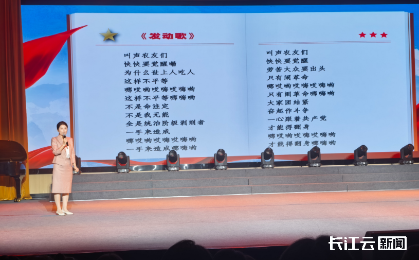 台上,主持人讲述歌曲背后的故事,解读蕴含的大别山精神,引申诠释总书记相关重要论述,指导青年学生弘扬大别山精神,听党话、跟党走,在中国式现代化征程上挺膺担当。台下,师生和观众挥舞着小红旗,跟着旋律重温革命战争年代发生在黄冈大地的英雄史诗,共同把现场气氛推向高潮。
