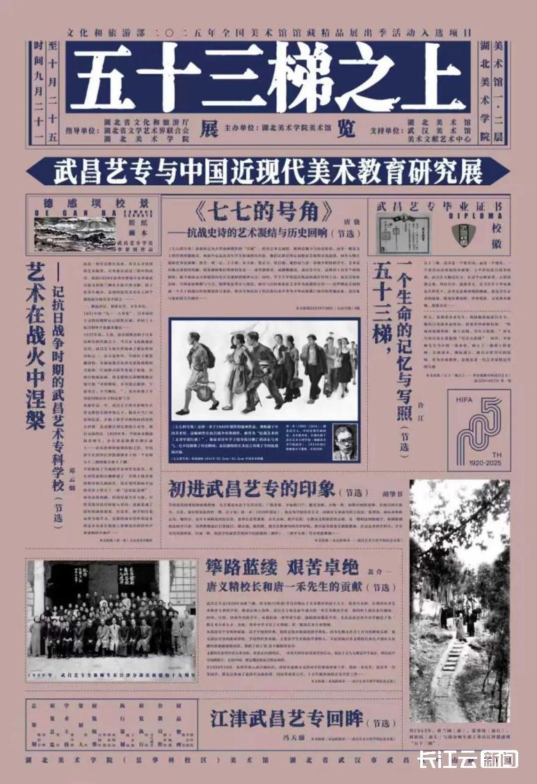 此次“五十三梯之上 ——武昌艺专与中国近现代美术教育研究展”,入选国家文化和旅游部2025年全国美术馆馆藏精品展出季活动项目,展览精选武昌艺专师生代表作110余件、文献史料200余件、口述历史影像120分钟,以视觉与文献的双重叙事,重构抗日战争峥嵘岁月中的艺术现场与教育现场。展览由湖北美术学院主办。
