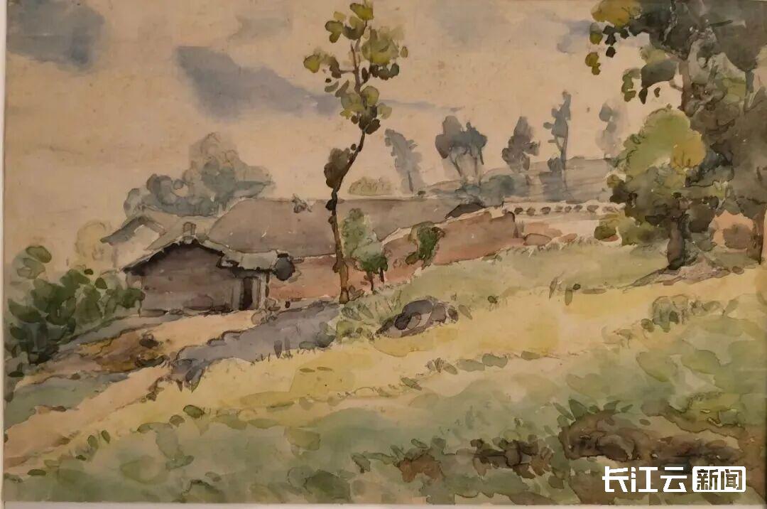 冯中衡《江津五十三梯——武昌艺专校舍》水彩28cm×19cm 1944年 私人收藏
